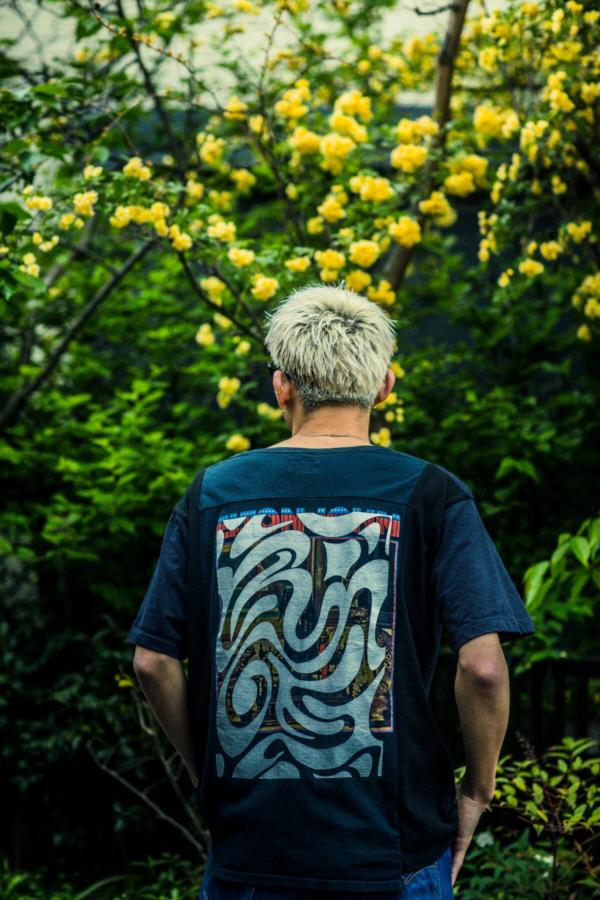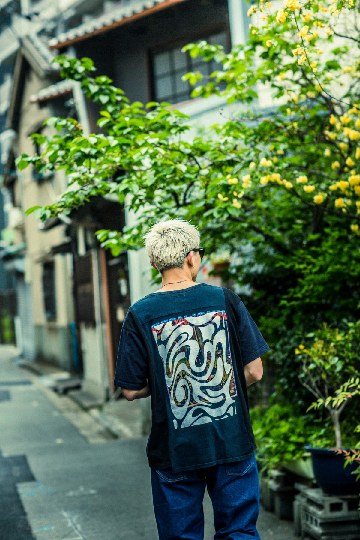 USEDのプリントTEEの前後を入れ替えてバックプリントTEEにしています