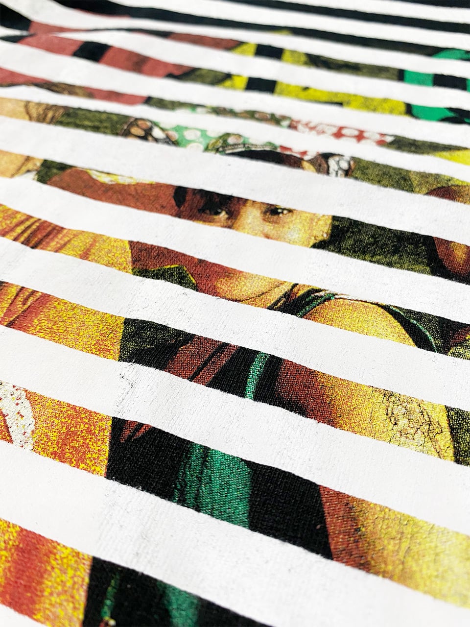 新品パーツ(袖、前後身頃上部分)にもプリントを入れ