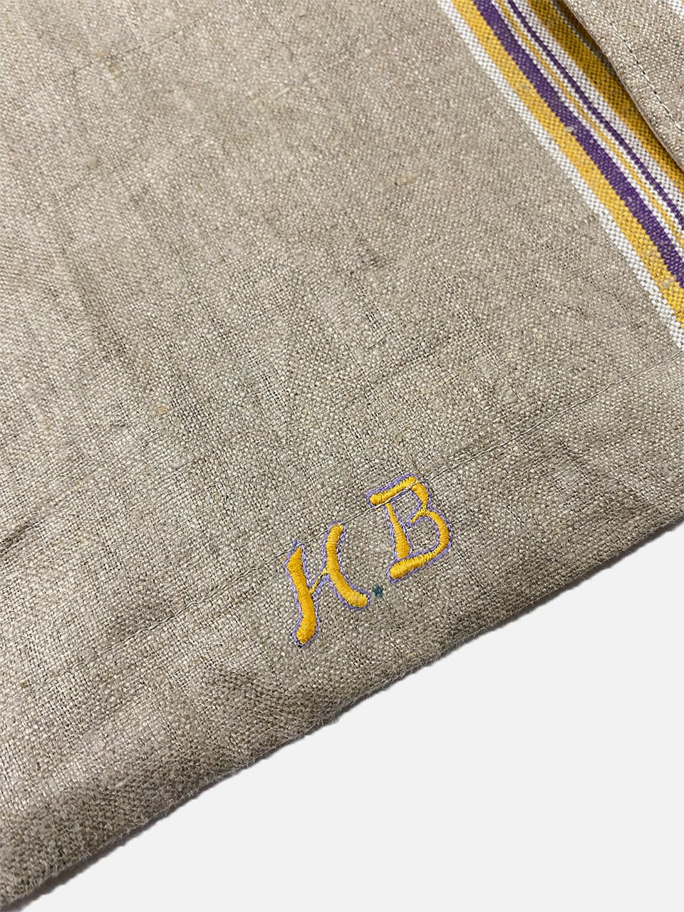 ドイツ製マングルクロス(Mangeltuch)は、ローラー式アイロン(マングル機)の熱や摩擦から衣類を守るための、丈夫なドイツの伝統的なリネン(麻)の当て布で、赤や青などのラインが特徴的、アンティーク市場で人気のリメイク素材としても取引されています。昔は各家庭に一枚あるほど普及し、所有者のイニシャルが刺繍されているものもあり、独特の風合いと歴史的価値があります。