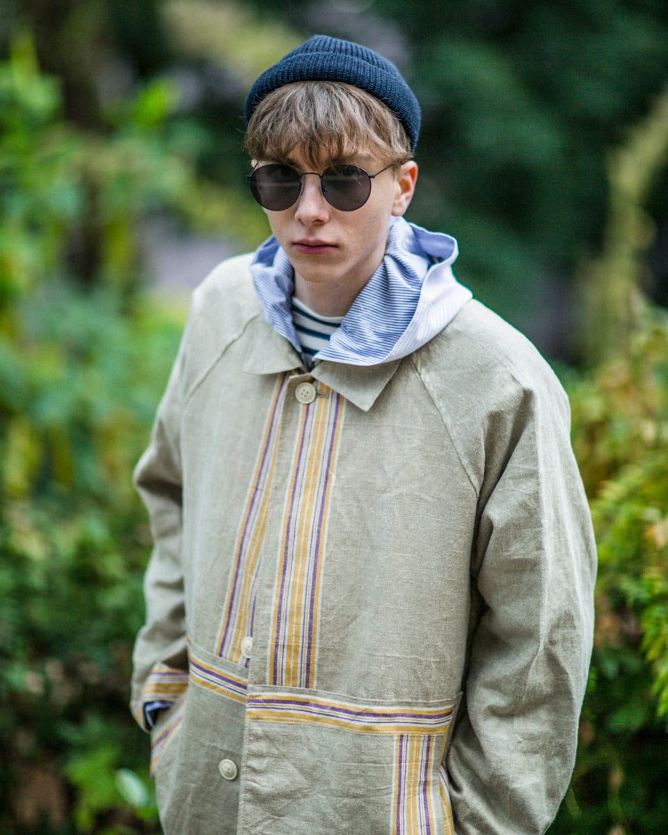 アンティークのドイツ製の生地を使いコートに再構築