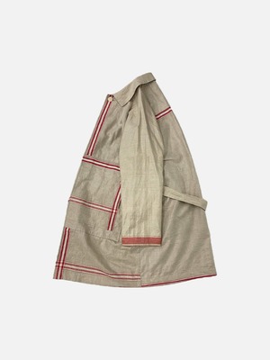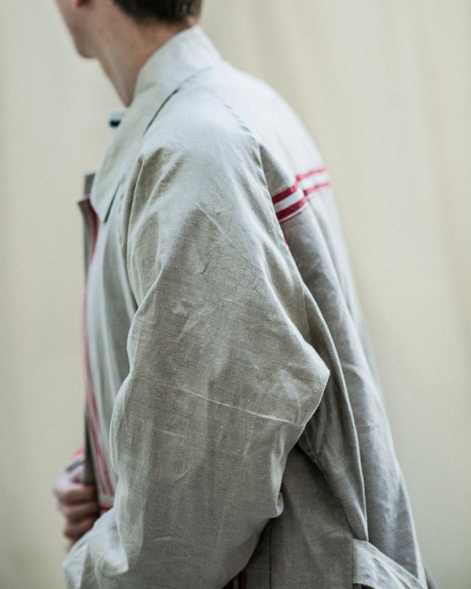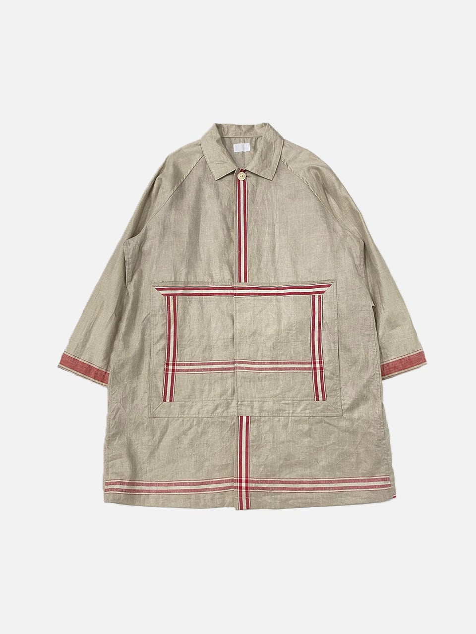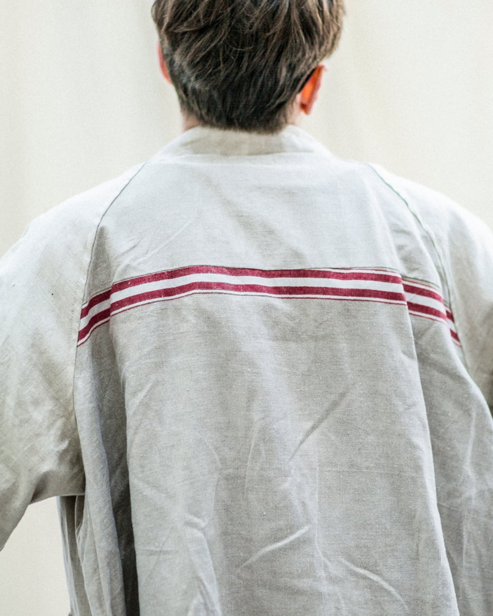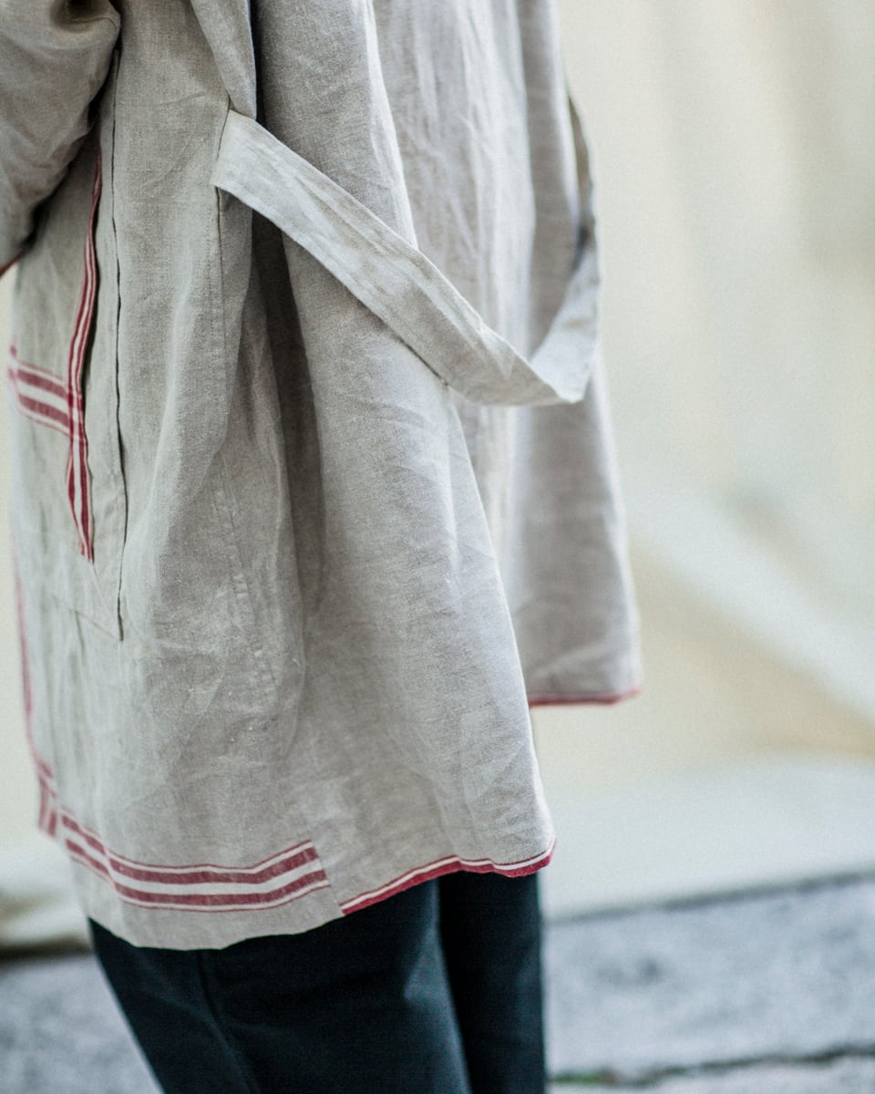ドイツ製マングルクロス(Mangeltuch)は、ローラー式アイロン(マングル機)の熱や摩擦から衣類を守るための、丈夫なドイツの伝統的なリネン(麻)の当て布で、赤や青などのラインが特徴的、アンティーク市場で人気のリメイク素材としても取引されています。昔は各家庭に一枚あるほど普及し、所有者のイニシャルが刺繍されているものもあり、独特の風合いと歴史的価値があります。