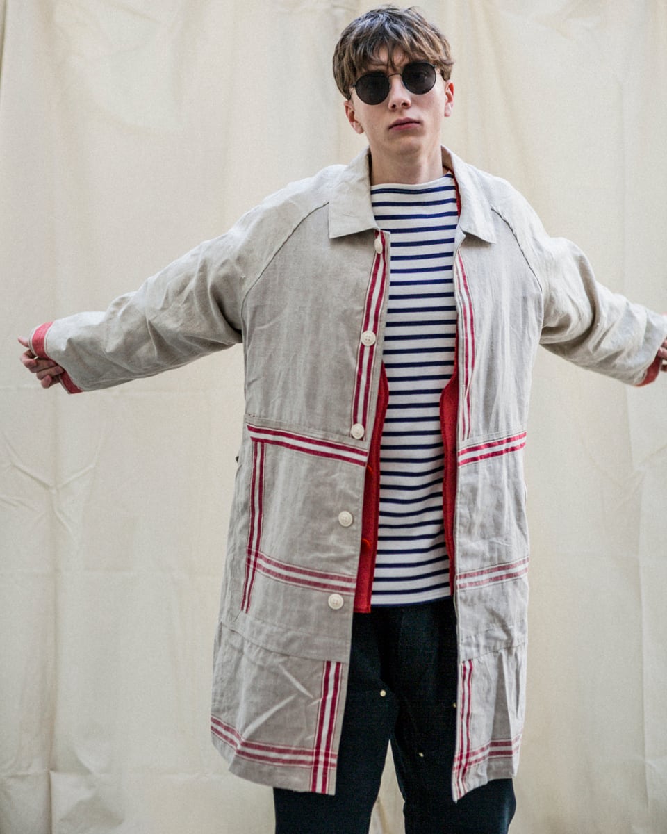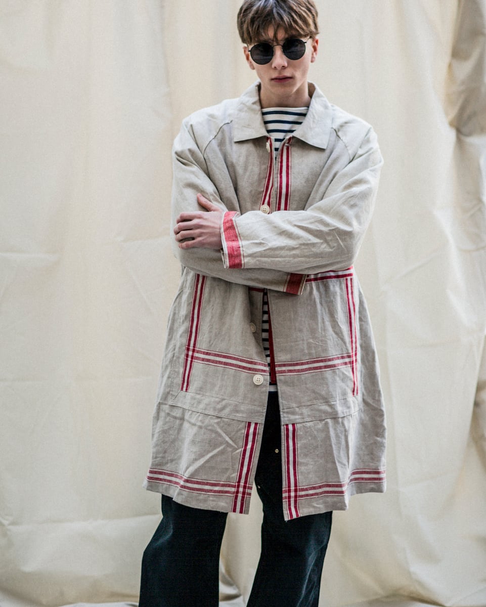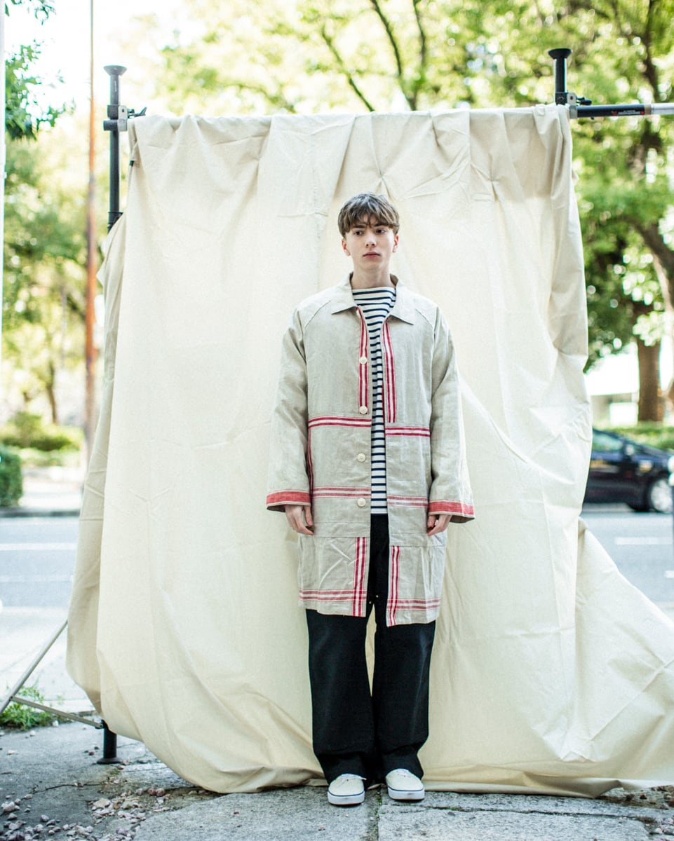 程よくゆとりのあるサイズ感で膝上丈のスプリングコートに