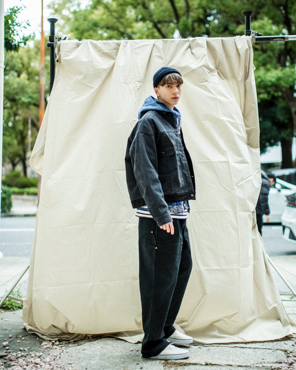 程よく着込んだダックパンツの風合いとフェード感が組み合わさりグラデーションになっているのが特徴です
