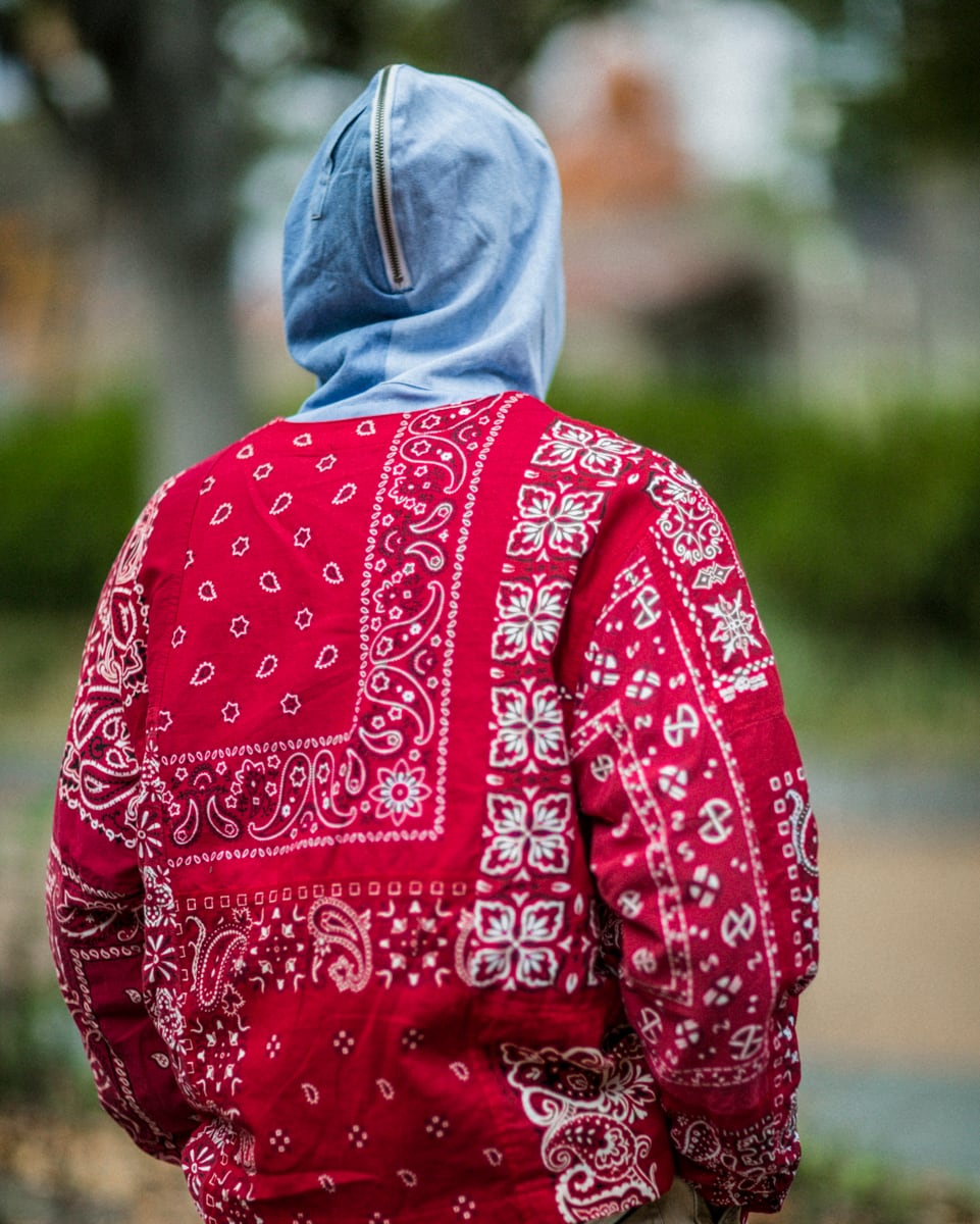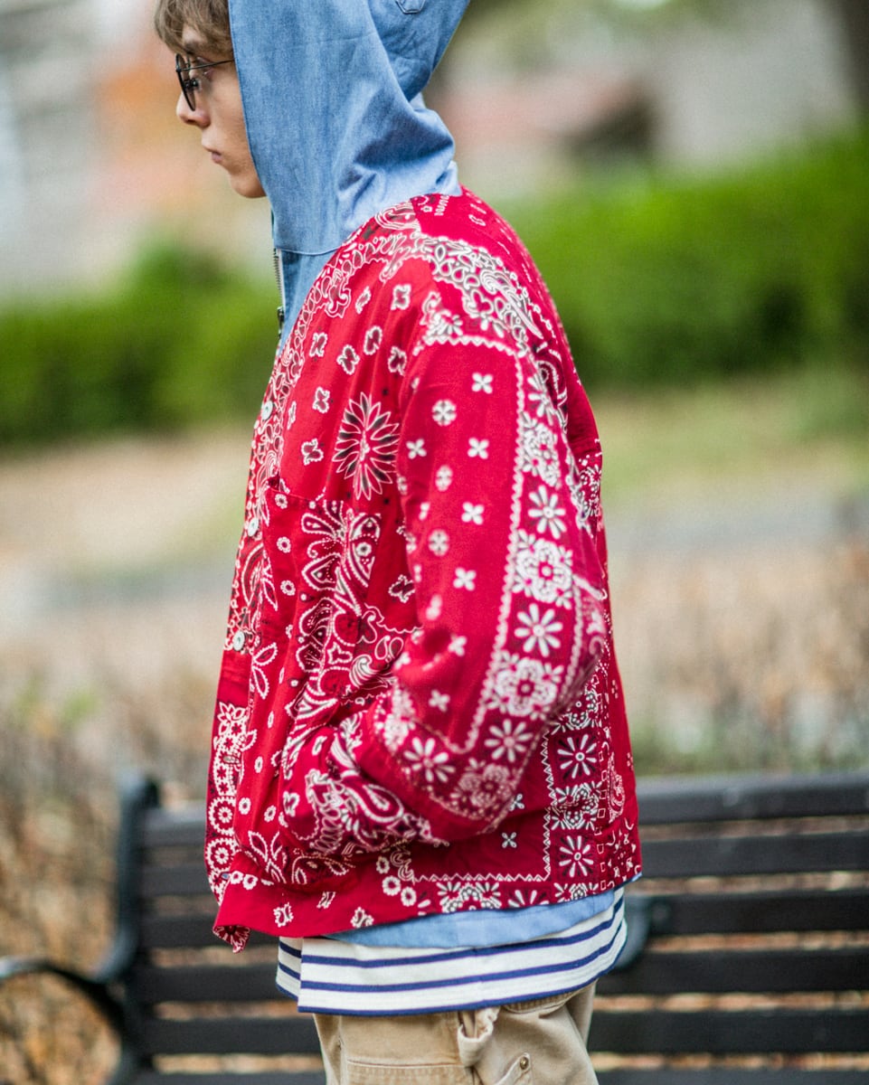 VINTAGEのバンダナを14枚解体し再構築したエンジニアジャケットです