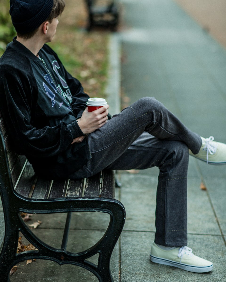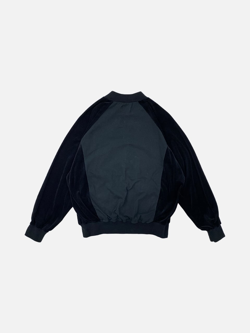 古着の段階で黒に染めベルベットに生地と組み合わせ