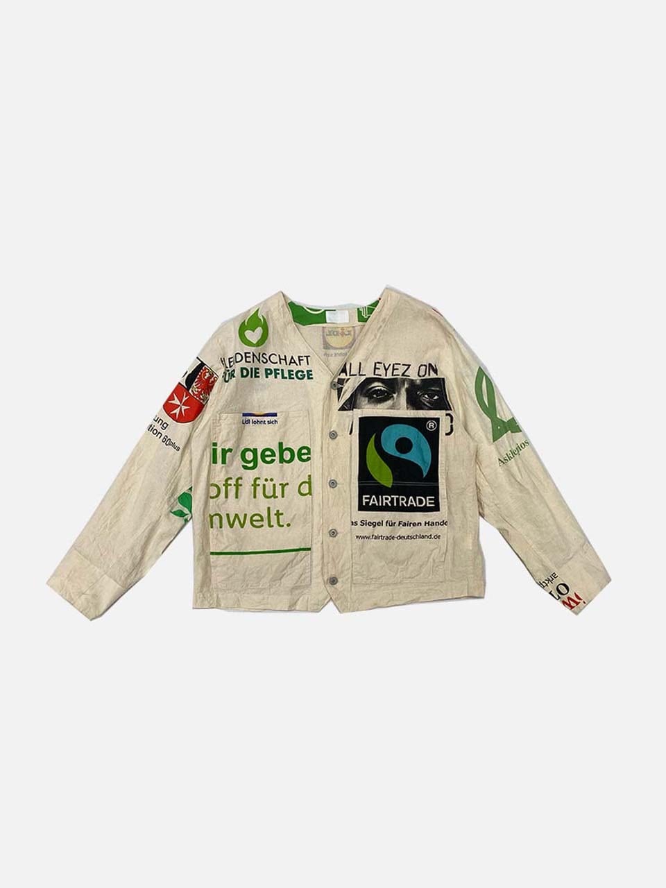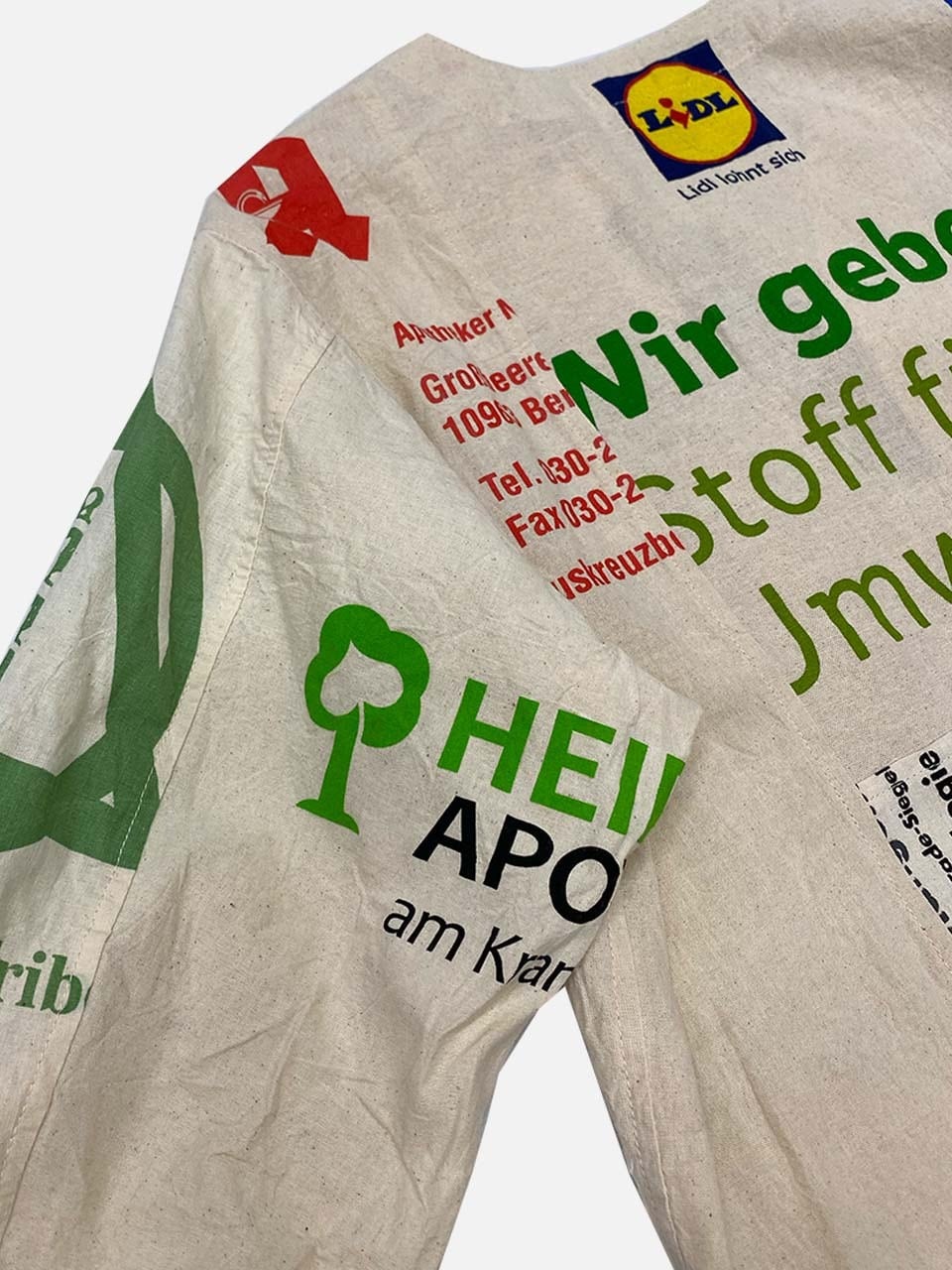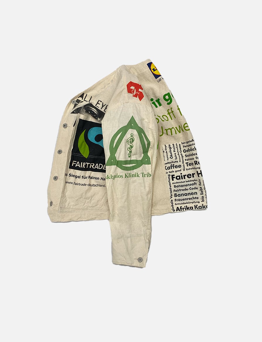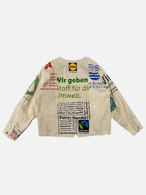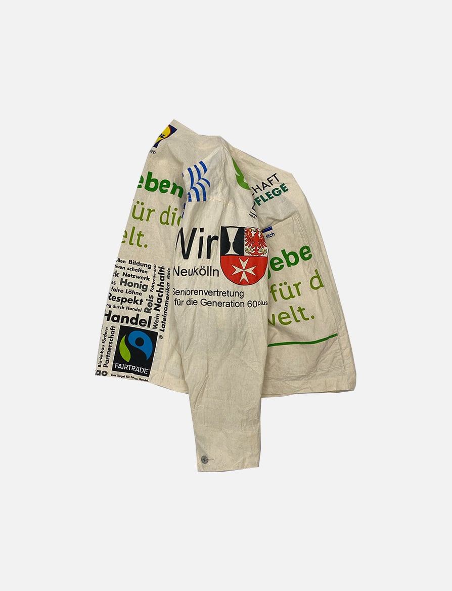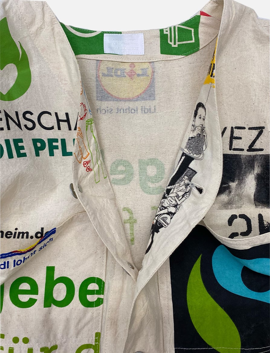 USEDのヨーロッパのエコバッグを15枚解体し再構築したエンジニアジャケットです