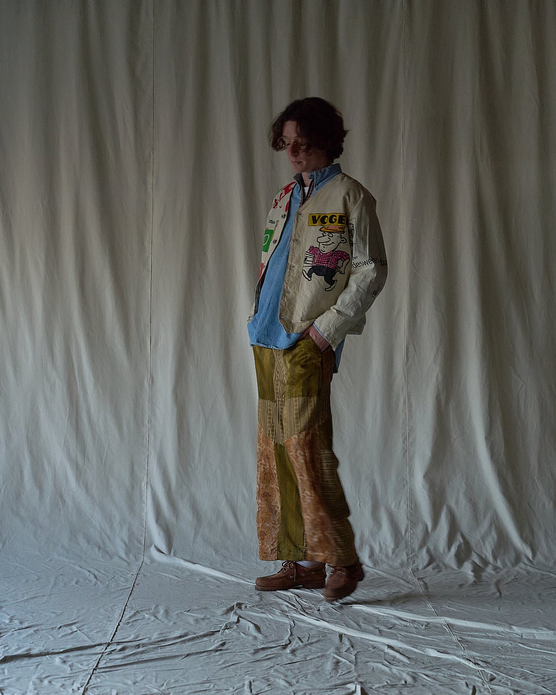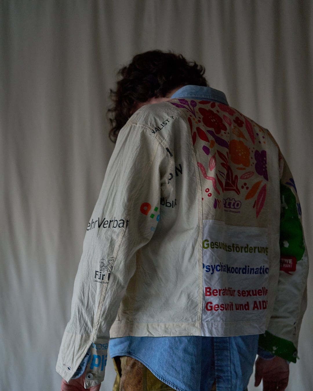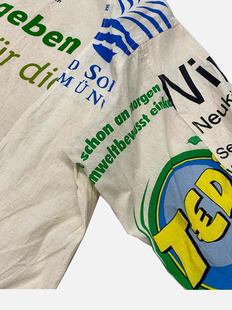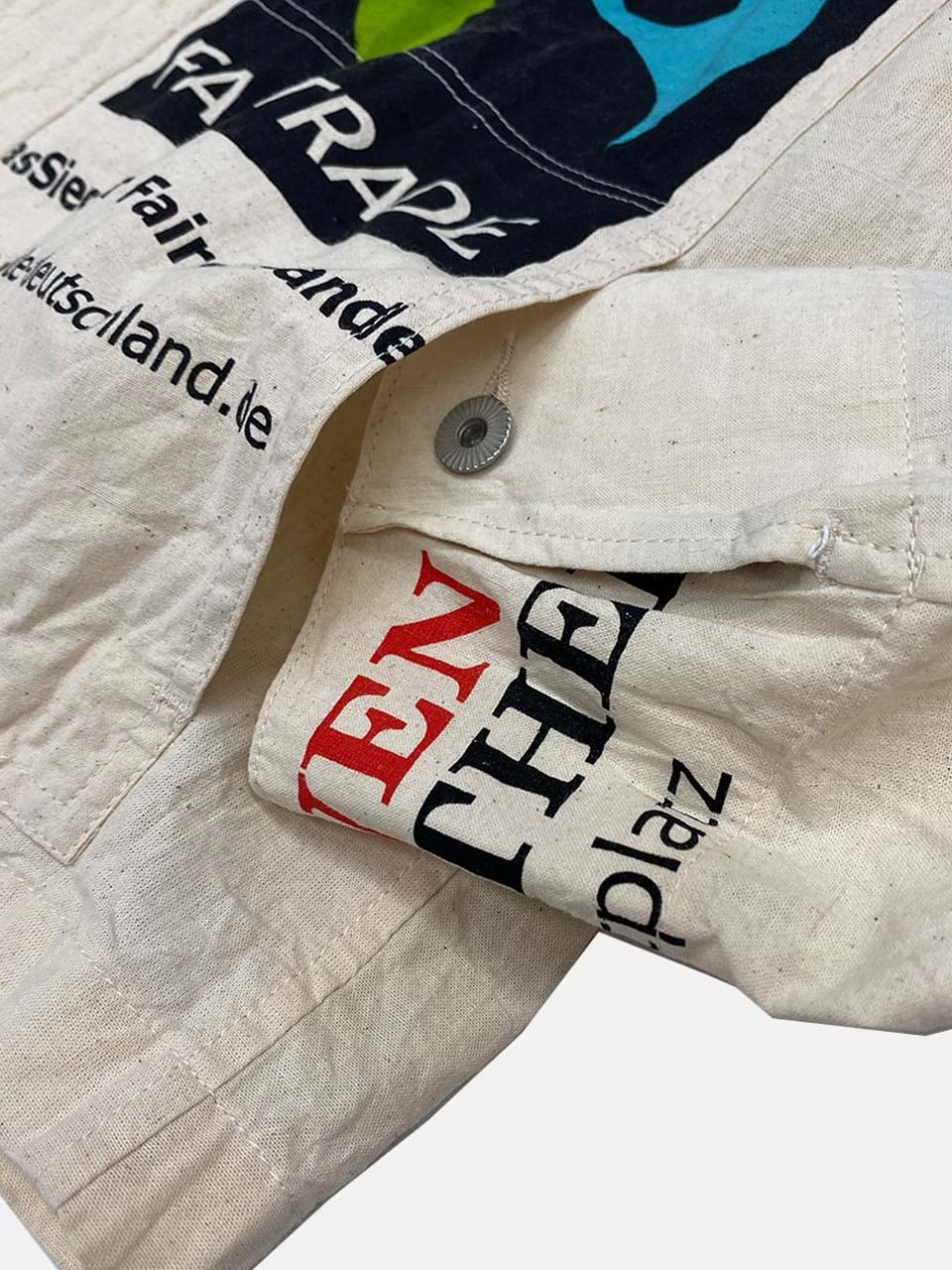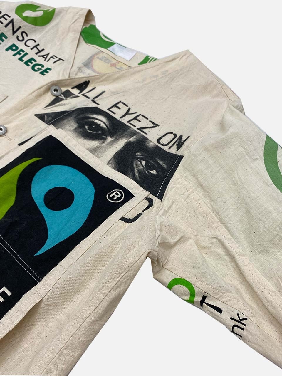 USEDのヨーロッパのエコバッグを15枚解体し再構築したエンジニアジャケットです