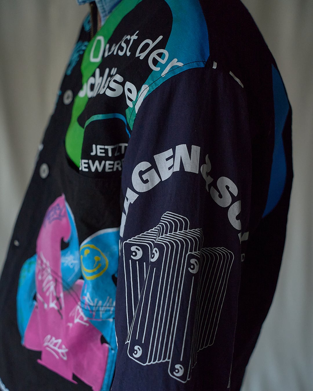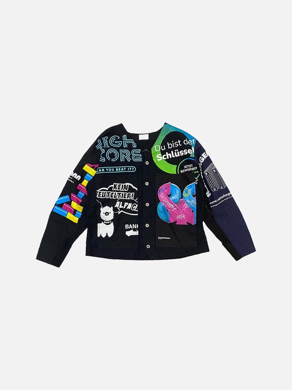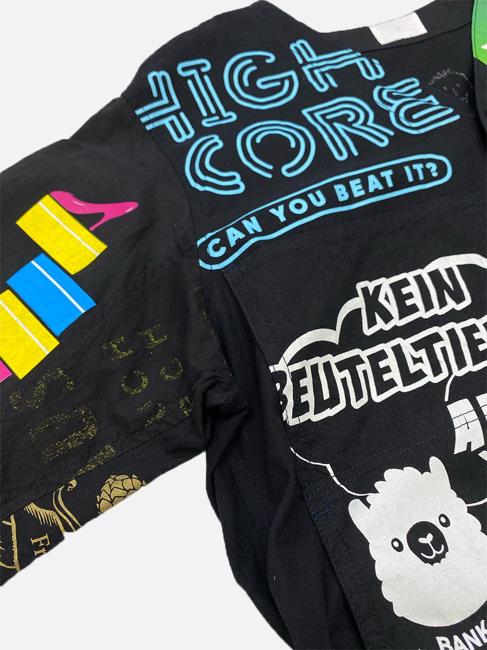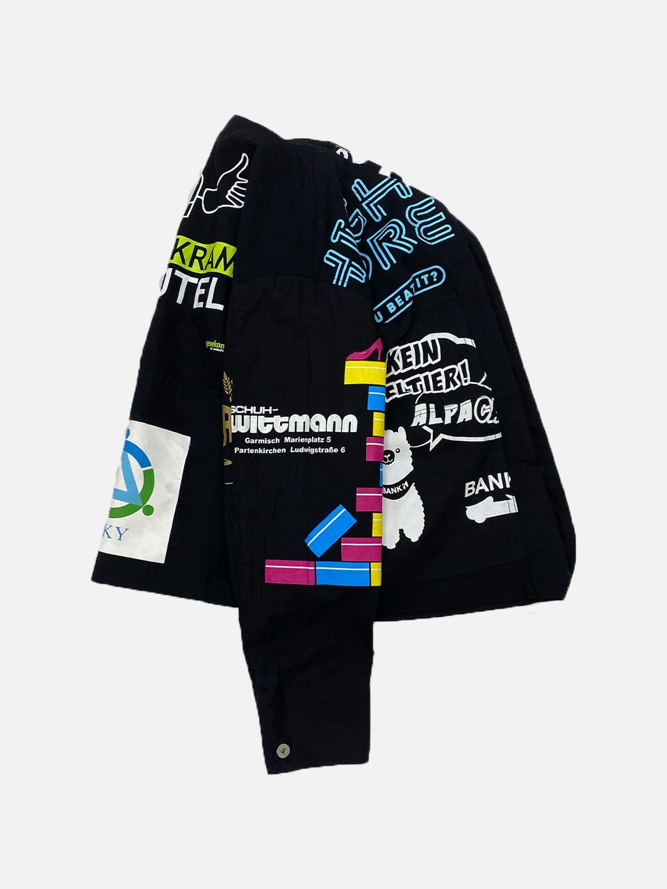 USEDのヨーロッパのエコバッグを15枚解体し再構築したエンジニアジャケットです