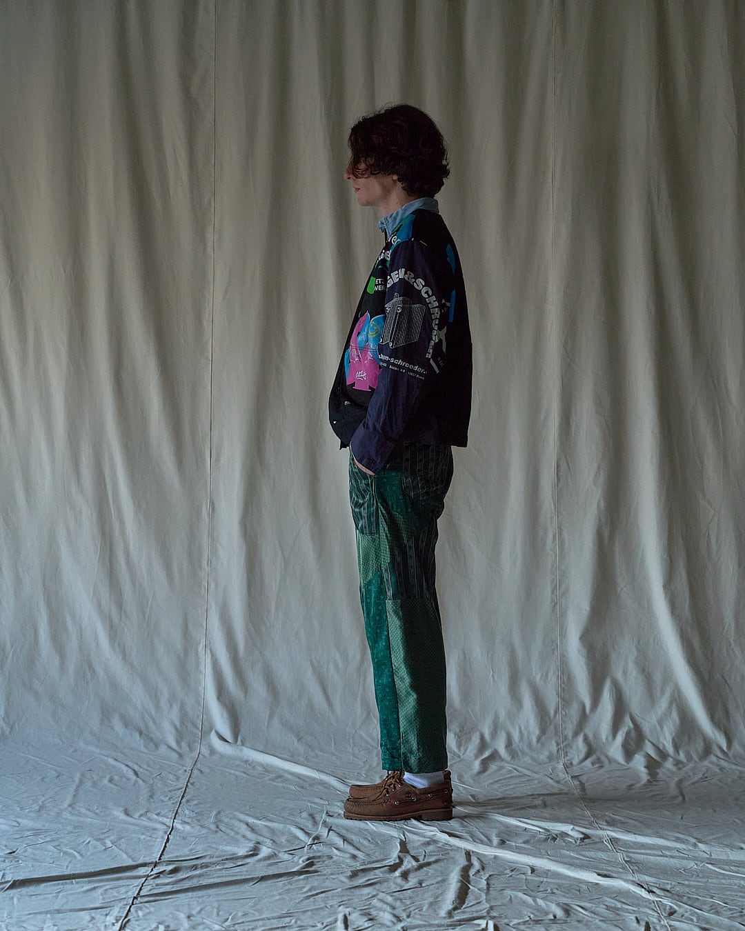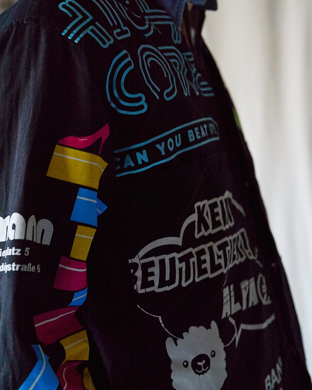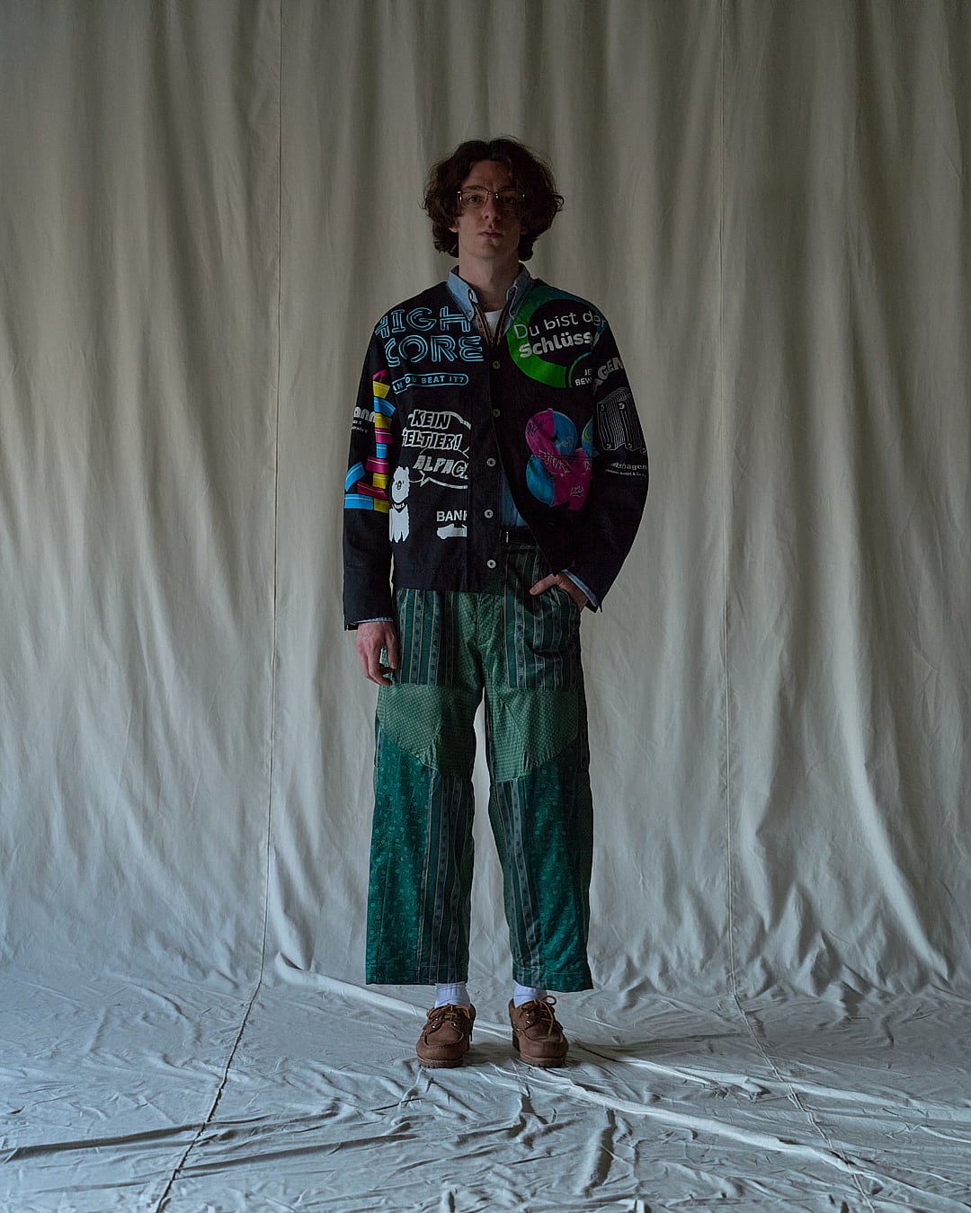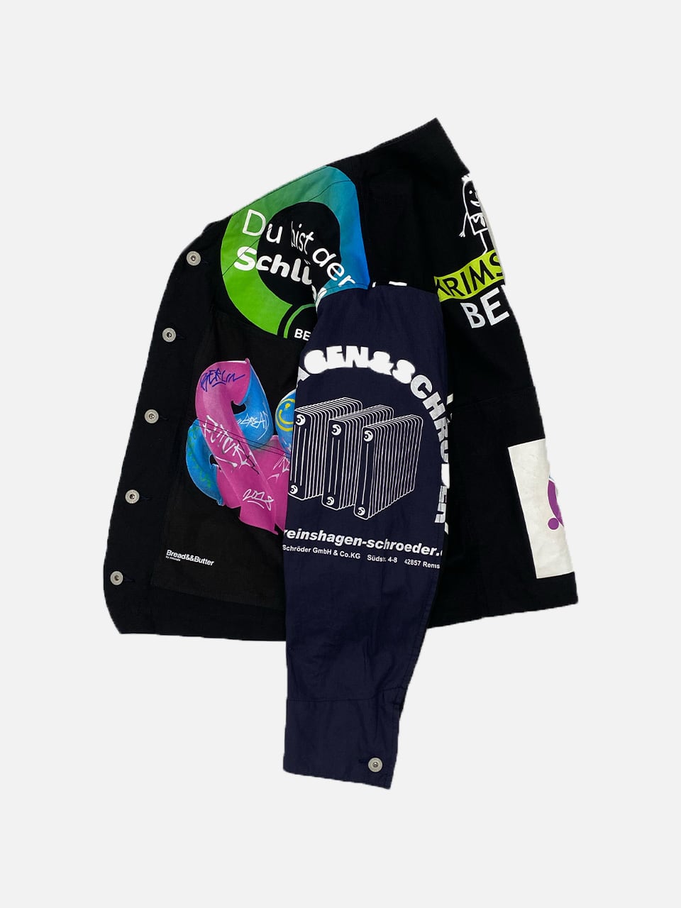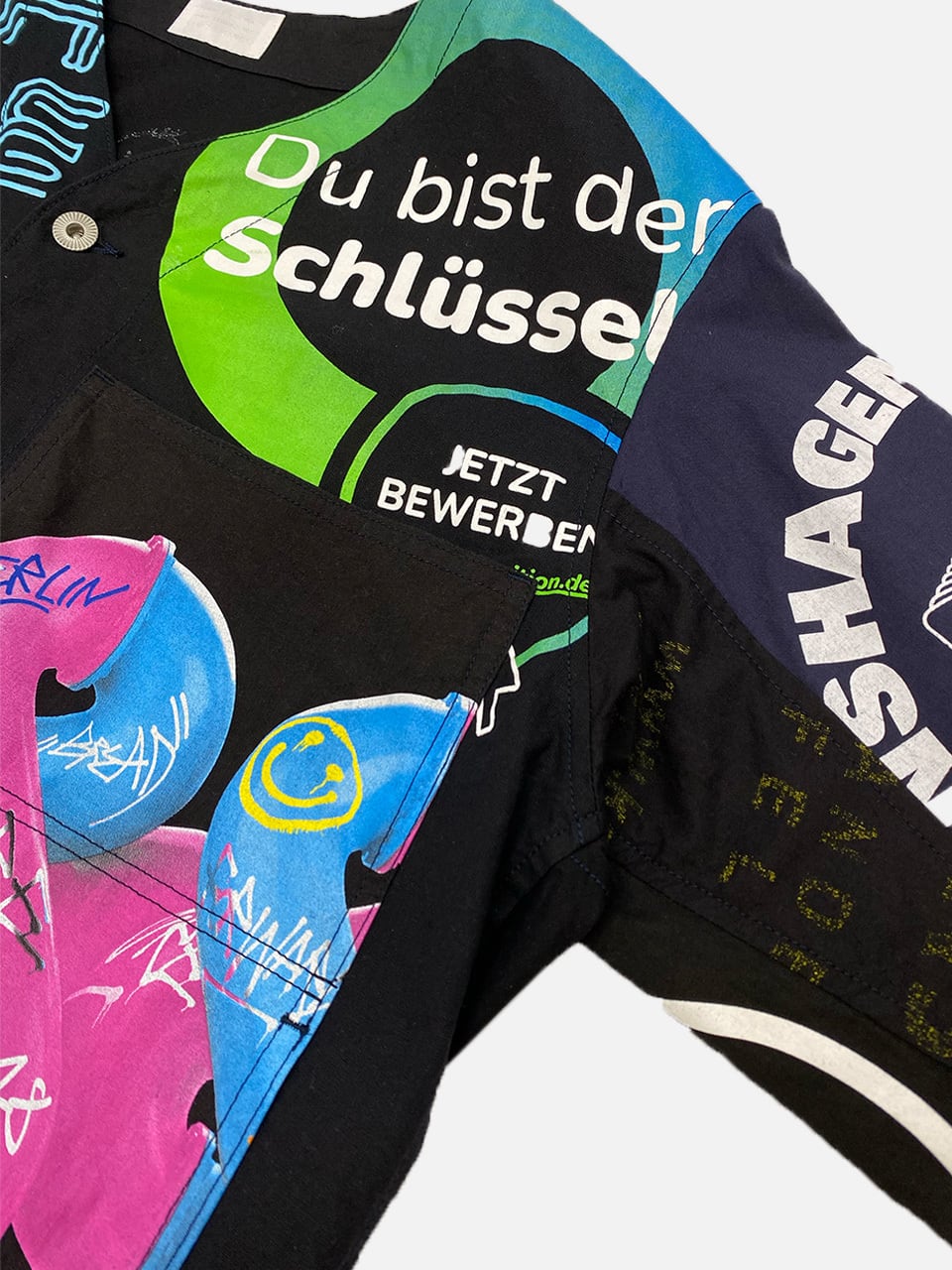 USEDのヨーロッパのエコバッグを15枚解体し再構築したエンジニアジャケットです